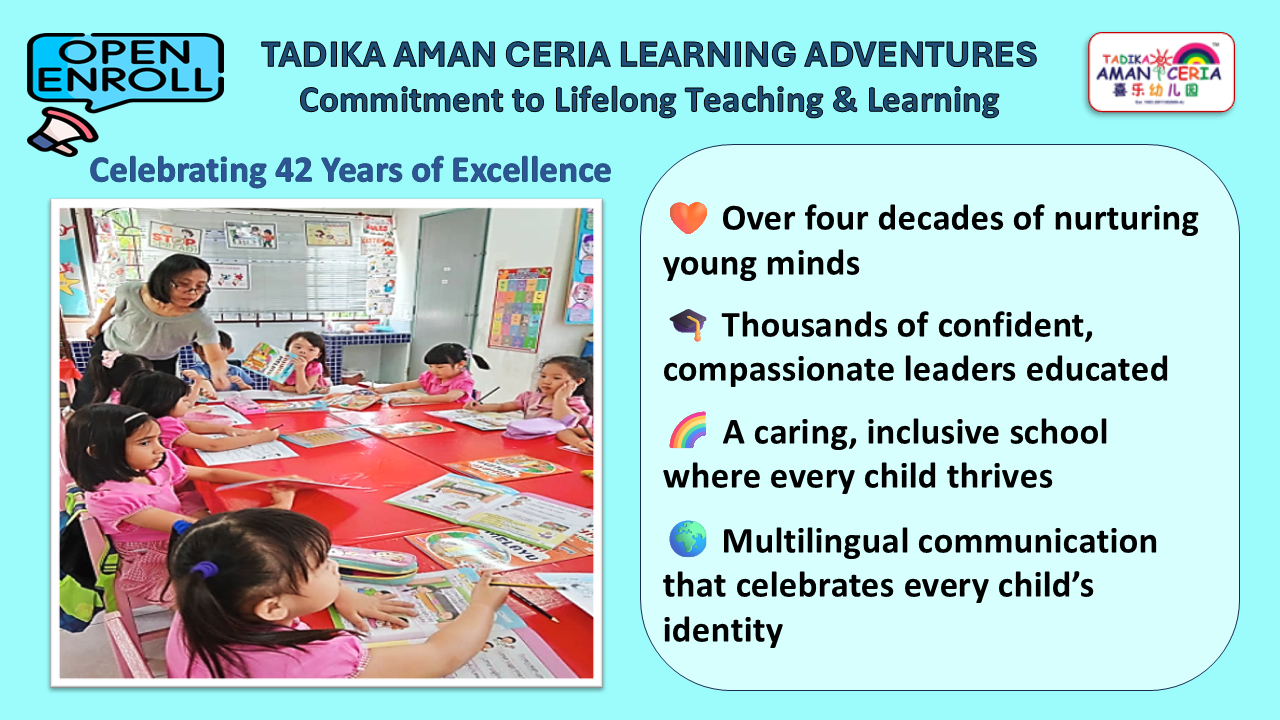 Tadika Aman Ceria is a leading provider of quality education and childcare. It's one stop learning hub integrates the best preschool education, play-project and inquiry- based learning.