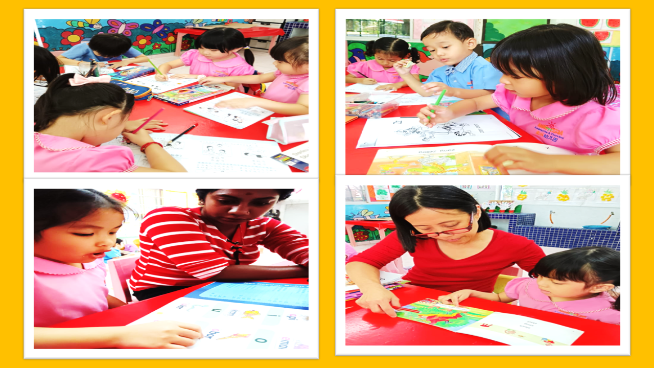 Audio visual contents and flash cards are used to improve children' visual sense. This allows them to understand easily, in order to cultivate concentration and memory.